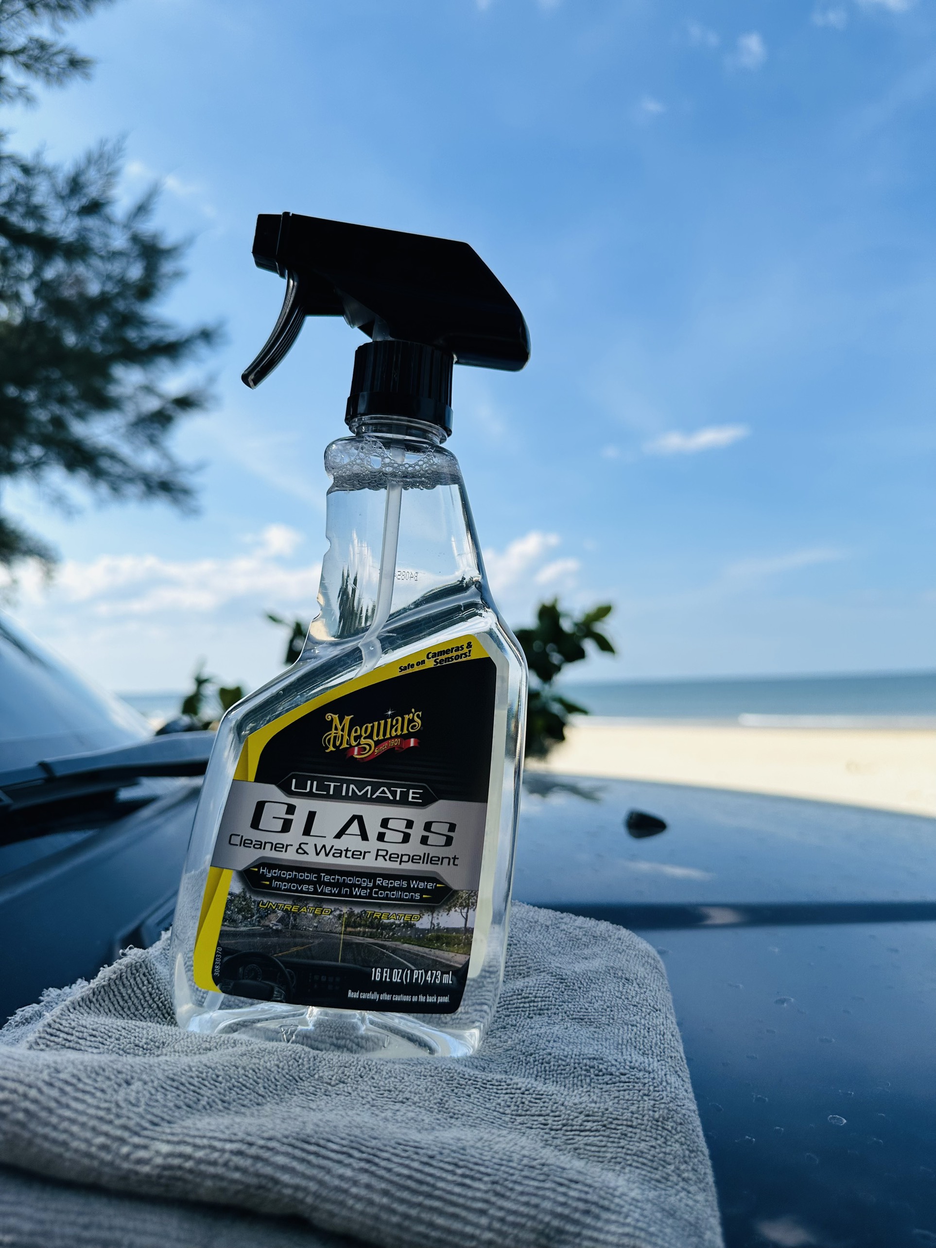 1 chai Meguiar's Ultimate Glass Cleaner & Water Repellent: Nước lau vệ sinh kính, có tạo hiệu ứng lá sen, 473 ML