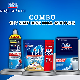 Combo 100 Viên rửa bát Finish nhật bản + muối rửa bát finish 1.5kg + dung dịch nước làm bóng bát finish 800ml dùng cho Máy - Viên rửa bát Finish nhật bản 100