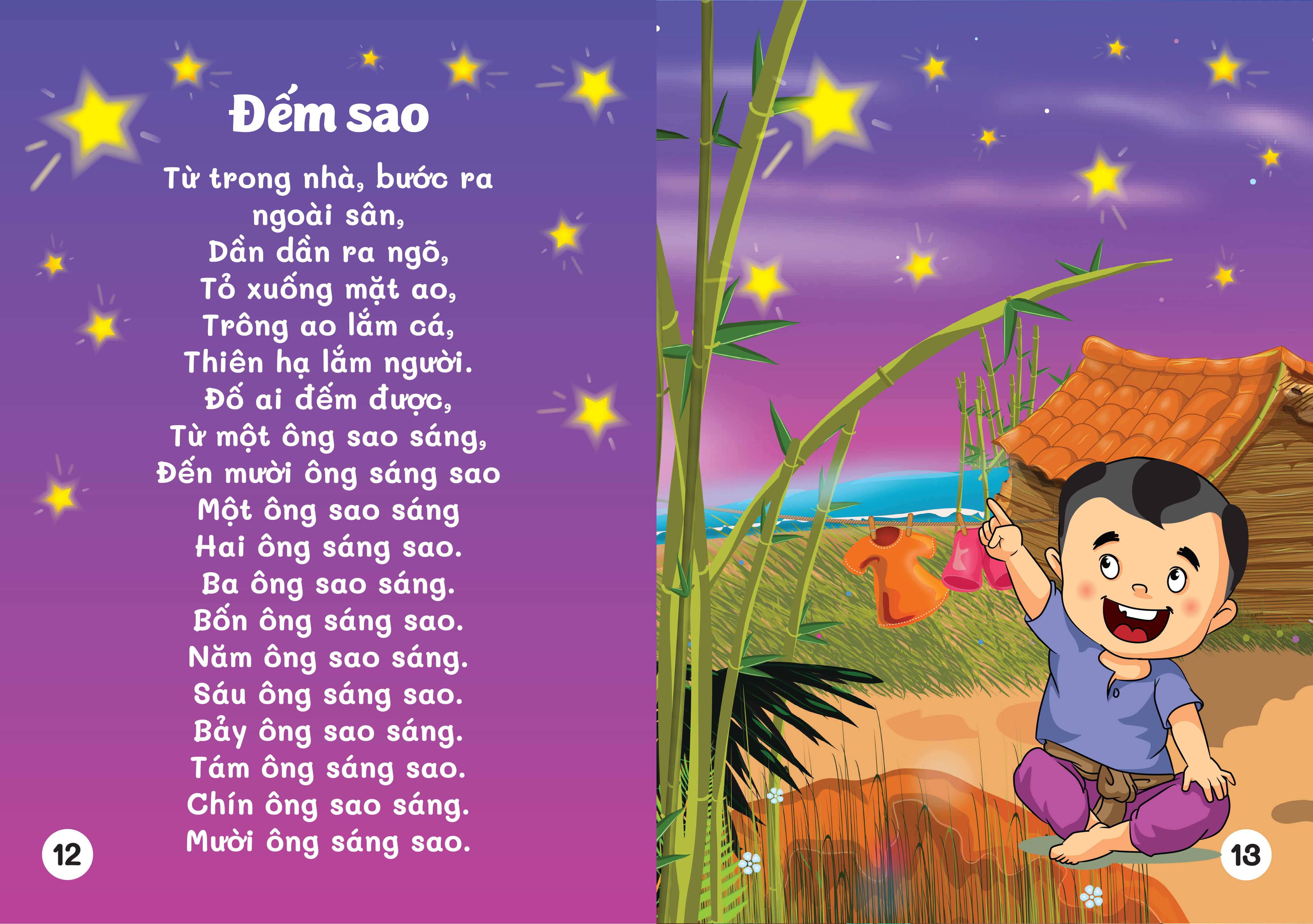 Quyển 1 - Đồng dao cho Bé - Thế giới quanh ta và cuộc sống động vật, thực vật quanh bé - Bé Từ 3+ trở lên (Cho bé tập nói) Trong sách gồm có 2 Phần: Phần 1: Có 39 bài về Thế giới quanh ta và cuộc sống. Phần 2: có 20 bài về Động vật, Thực vật quanh bé.