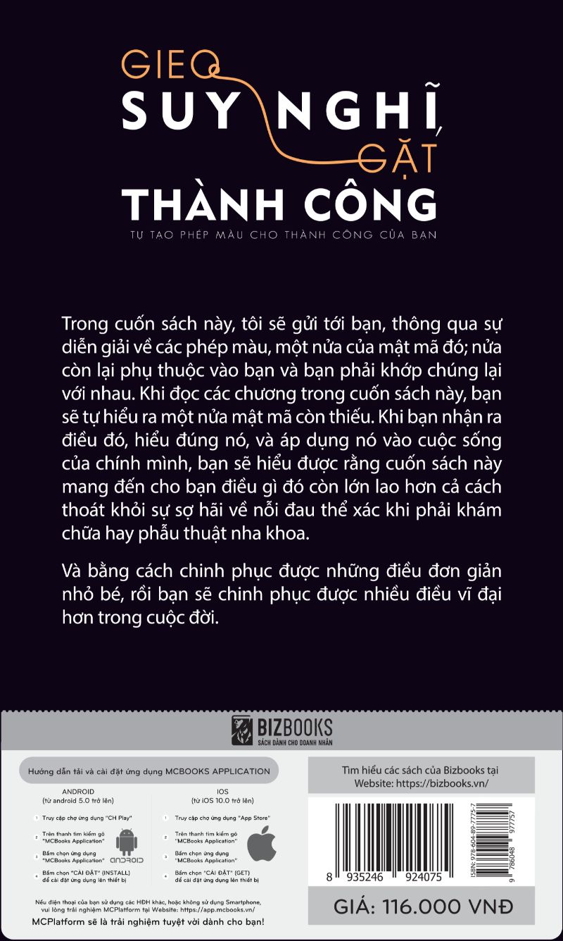 Hãy đọc cuốn sách “Gieo suy nghĩ gặt thành công” với một tâm hồn mở và bạn sẽ nhận ra các trang sách đang tiết lộ cho bạn PHÉP MÀU VĨ ĐẠI nhất – một phép màu mà chỉ có bạn mới có thể hiểu nó và chỉ bạn mới có thể kiểm soát nó. Bạn sẽ nắm được những bí quyết điều chỉnh thái độ tinh thần, loại bỏ cảm xúc tiêu cực, duy trì sự bình yên trong tâm trí. Bạn có thể áp dụng vào cuộc sống của mình và sẽ hiểu được rằng cuốn sách này mang đến cho bạn điều gì đó còn lớn lao hơn cả cách thoát khỏi sự sợ hãi về nỗi đau thể xác khi phải khám chữa hay phẫu thuật nha khoa. Bằng cách chinh phục những điều đơn giản nhỏ bé, rồi bạn sẽ chinh phục được nhiều điều vĩ đại hơn trong cuộc đời