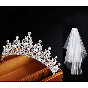 Set sản phẩm gồm: 1 vương miện cài tóc và 1 lúp cô dâu