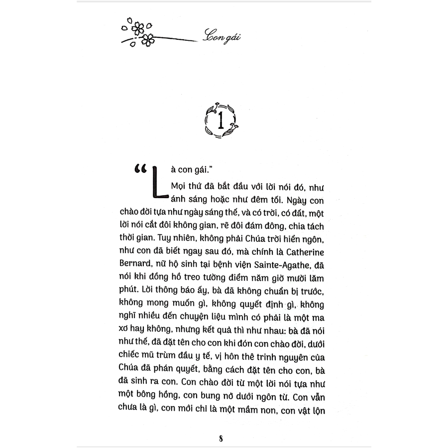 1. “Mẹ ơi, mẹ biết khô”, nó lại nói – nó nói rõ ràng, và trong giọng của nó, thật buồn cười, có chút gì như hồ nghi mô phạm – “mẹ biết không, con gái cũng rất tốt. Và thậm chí” – nó cười như thể cười với một kỷ niệm – “thậm chí tuyệt vời, con gái ấy ạ”.
