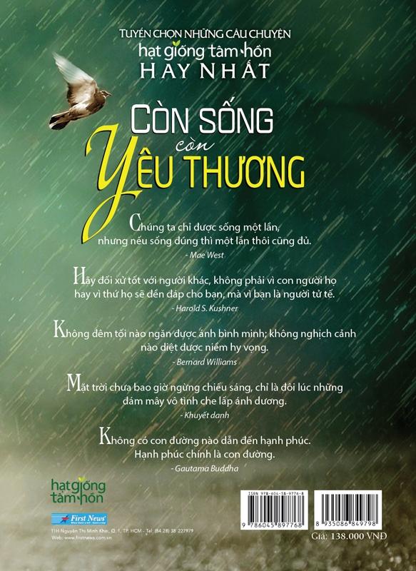 Cuộc sống luôn có hai mặt tốt-xấu cùng tồn tại, quan trọng là bản thân ta chọn tập trung vào mặt nào. Chúng ta thường quên mất rằng hạnh phúc không đến từ việc theo đuổi để có được những thứ mình không có, mà đến từ việc ta nhận ra và trân trọng những gì mình đang có. Vậy, tại sao chúng ta cứ chăm chăm vào những điều tiêu cực để rồi bi quan và tuyệt vọng? Thay vào đó, chúng ta nên nhìn vào những điều tốt đẹp vẫn luôn hiện diện trong cuộc sống, để nhận ra mình vẫn còn lý do để tiếp tục yêu thương và tiếp tục hy vọng. Còn Sống Còn Yêu Thương chứa đựng 100 câu chuyện sâu sắc và ý nghĩa trong cuộc sống. Đôi khi, bạn chỉ muốn thu mình lại một góc, không dám mở cửa trái tim để trao đi cũng như đón nhận tình cảm của người khác vì sợ sẽ bị tổn thương. Nhưng cũng sẽ có lúc, bạn thầm mỉm cười khi trông thấy một cử chỉ tử tế nhỏ bé. Nó như một ánh nến nhỏ có thể thắp sáng cả đêm đen - một hành động tử tế đủ sức đẩy lùi bóng tối tiêu cực bao quanh cuộc sống của chúng ta. Cuốn sách là những câu chuyện hết sức đời thường như thế, về những con người gần gũi và bình dị, nhưng ẩn sâu trong từng câu chuyện là những thông điệp sâu sắc về tình yêu thương và sự tử tế. Tất cả những gì chúng ta cần làm là chung tay làm điều tử tế vì một thế giới tốt đẹp hơn. Bên cạnh đó, chúng ta cũng nên cảm ơn cuộc đời đã cho ta cơ hội để đau khổ. Từ đau khổ ấy, ta mới biết đồng cảm với đau khổ của người khác và yêu thương họ nhiều hơn. Hy vọng sau khi đọc xong những câu chuyện trong Còn Sống Còn Yêu Thương, quyển sách sẽ góp phần giúp bạn có cái nhìn lạc quan và tươi vui hơn trong cuộc sống.