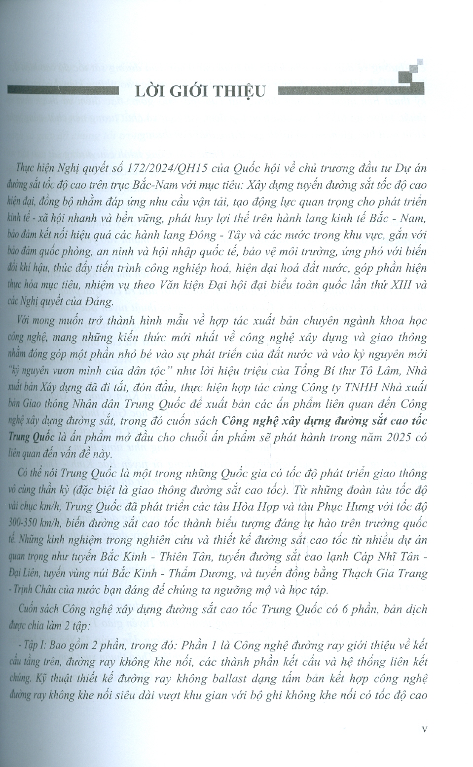 Với mong muốn trở thành hình mẫu về hợp tác xuất bản chuyên ngành khoa học công nghệ, mang những kiến thức mới nhất về công nghệ xây dựng và giao thông nhằm đóng góp một phần nhỏ bé vào sự phát triển của đất nước và vào kỷ nguyên mới “kỷ nguyên vươn mình của dân tộc” như lời hiệu triệu của Tổng Bí thư Tô Lâm, Nhà xuất bản Xây dựng đã đi tắt, đón đầu, thực hiện hợp tác cùng Công ty TNHH Nhà xuất bản Giao thông Nhân dân Trung Quốc để xuất bản các ấn phẩm liên quan đến Công nghệ xây dựng đường sắt, trong đó cuốn sách Công nghệ xây dựng đường sắt cao tốc Trung Quốc là ẩn phẩm mở đầu cho chuỗi ấn phẩm sẽ phát hành trong năm 2025 có liên quan đến vấn đề này.