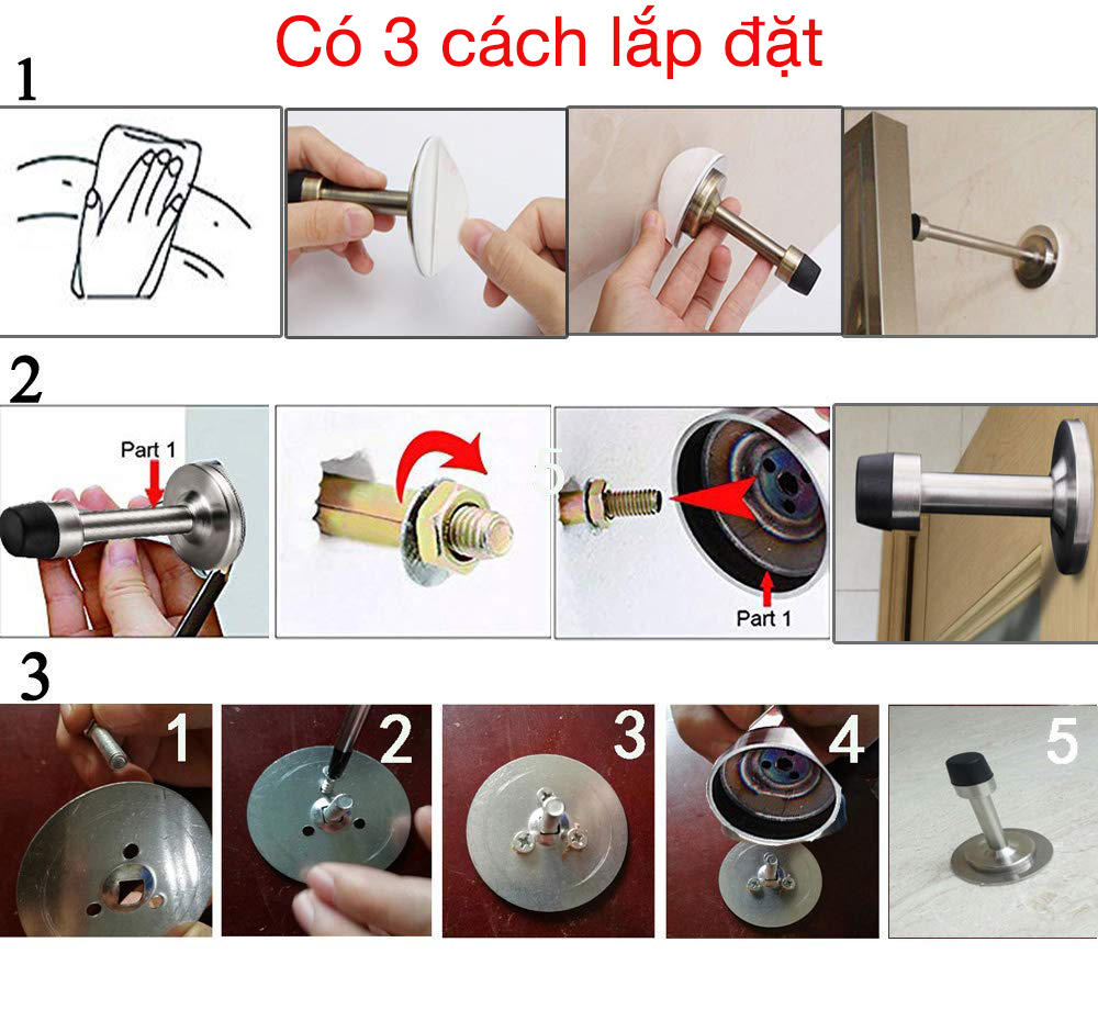 - Kiện hàng: 1 chặn cửa, 2 miếng keo, 1 bộ đinh ốc