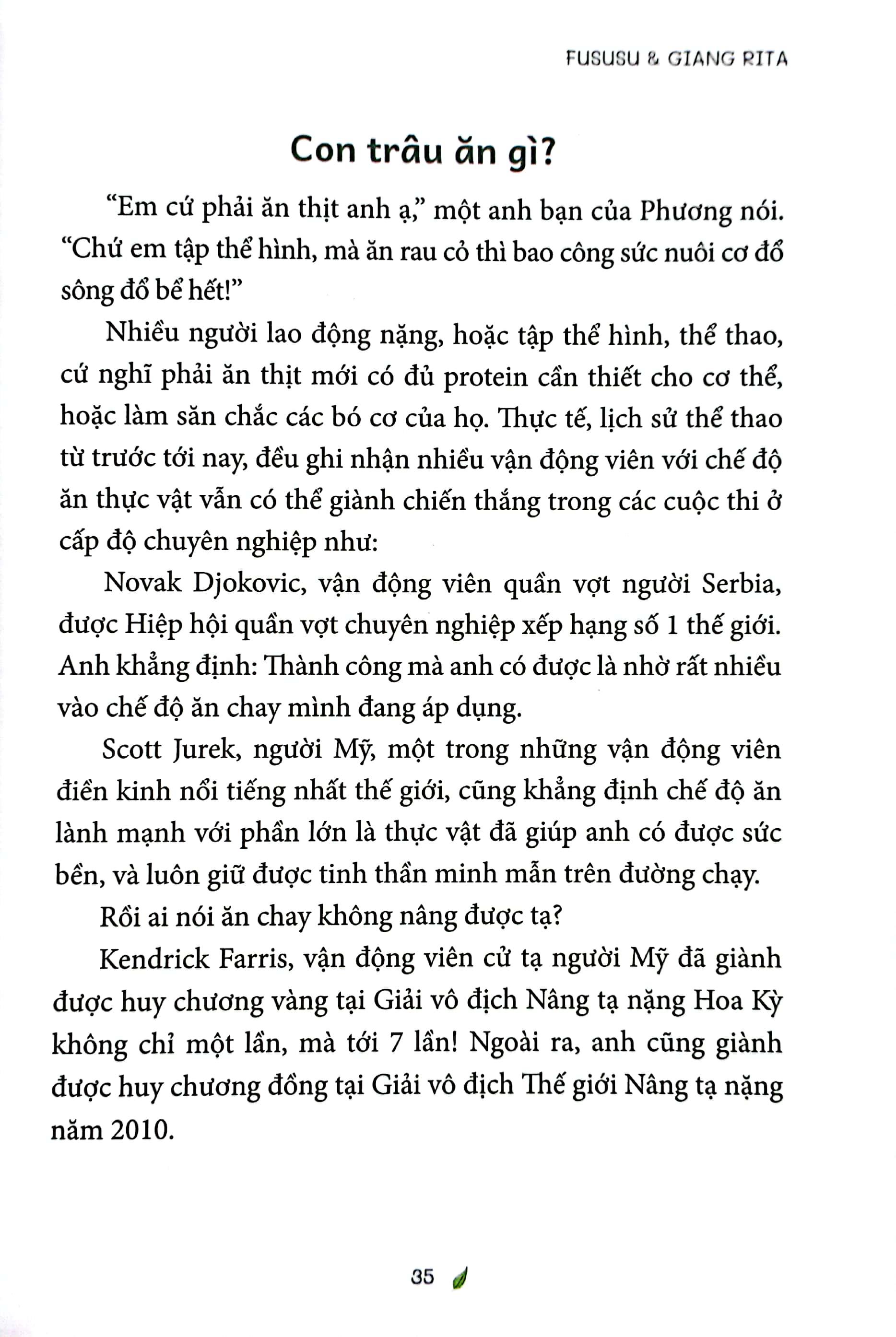 Cuốn sách là sự kết hợp kinh nghiệm thực tế hơn 10 năm ăn chay trường từ Fususu, với khoa học dinh dưỡng mà Giang đã học hỏi từ Plant-based Nufrition, khóa học dinh dưỡng thuần thực vật hàng đầu thế giới của tiến sĩ T. Colin Campbell.