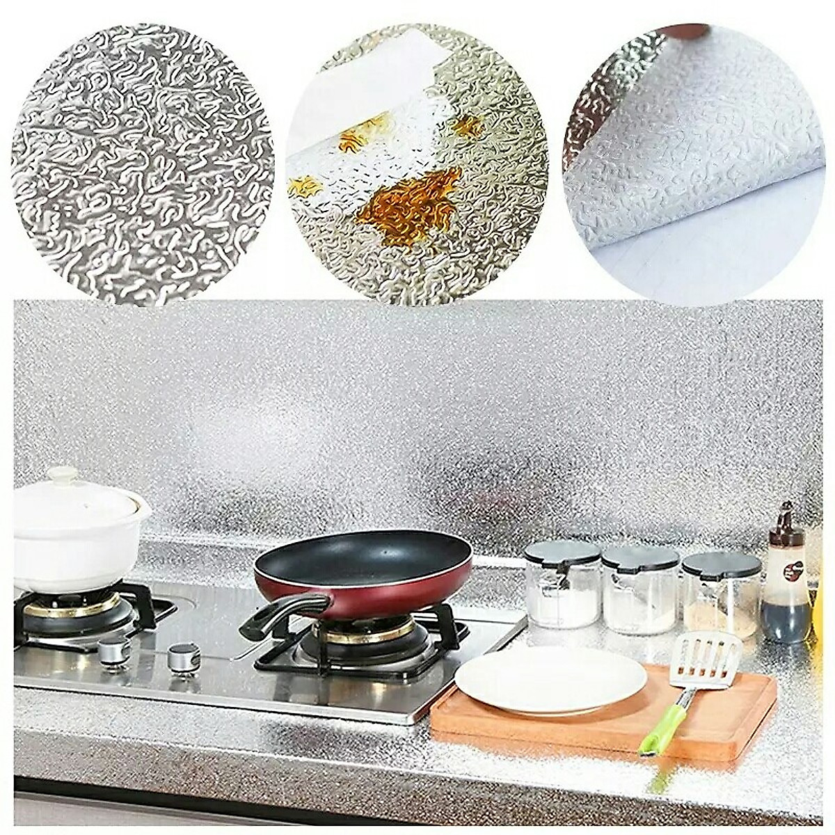 THÔNG TIN SẢN PHẨM GIẤY BẠC DÁN BẾP - Chất liệu: Giấy tráng nhôm cách nhiệt - Kích thước: 2mx60cm - Màu sắc: Bạc Giấy bạc dán bếp tráng nhôm cách nhiệt, không bám dính
