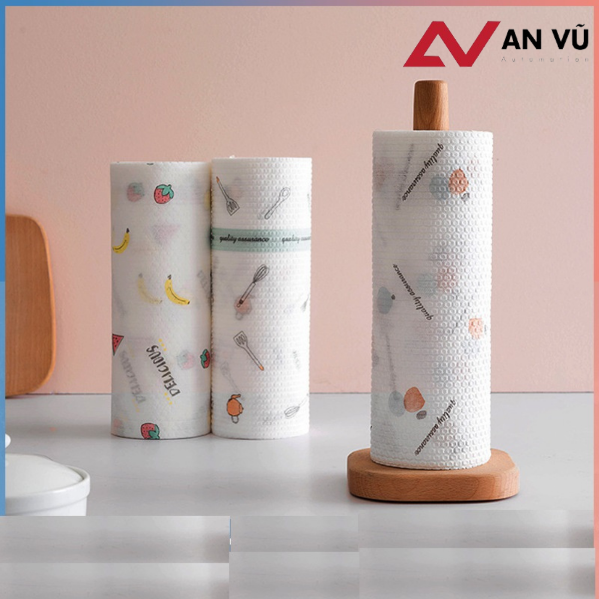 Cuộn khăn giấy lau bếp kèm cọc gỗ đa năng