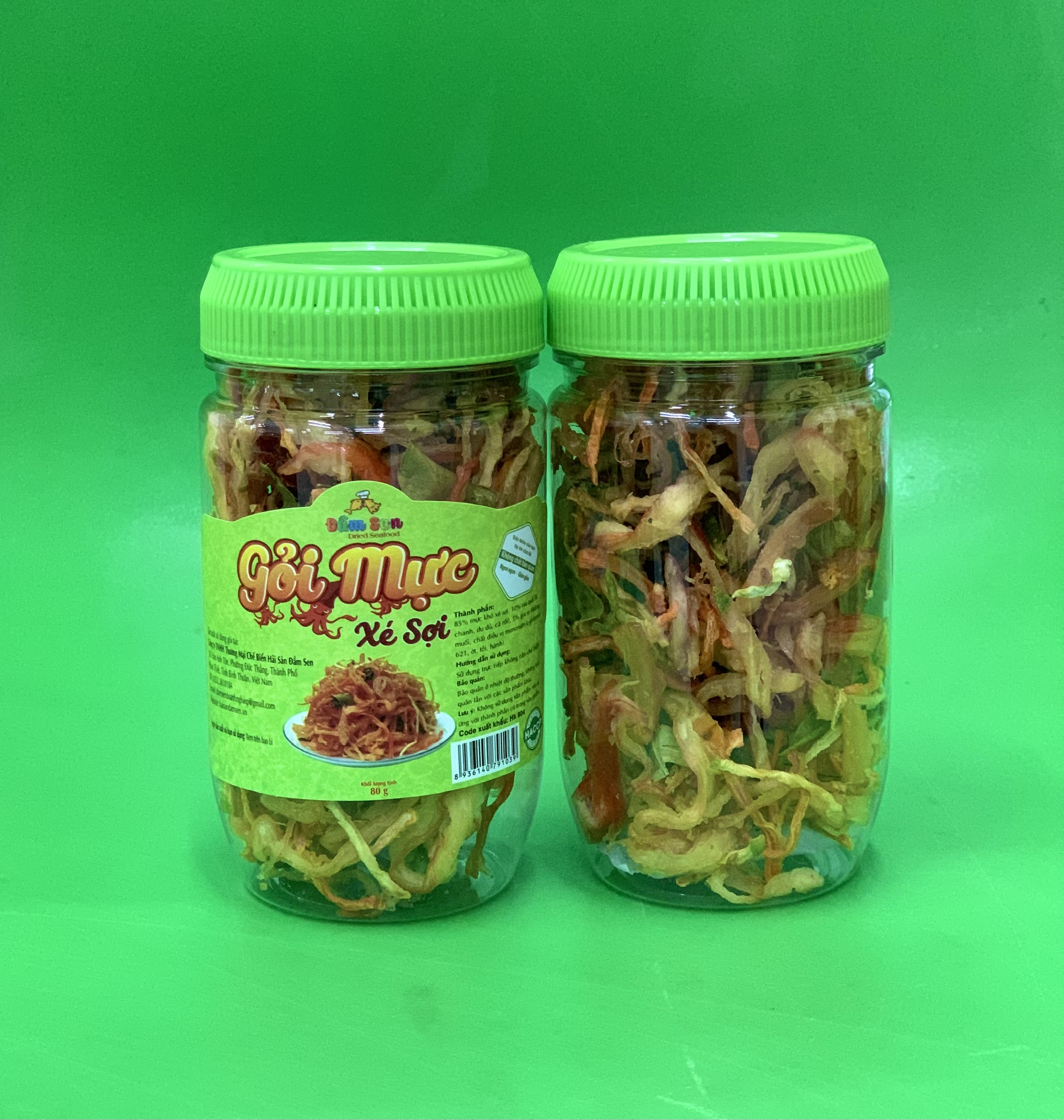 Mua tại TiktokThành phần: 85% Mực khô xé sợi, 10% rau quả (lá chanh, đu đủ, cà rốt), 5% gia vị (đường, muối, bột ngọt, ớt, tỏi, hành) Hạn sử dụng: 12 tháng kể từ ngày sản xuất Hướng dẫn sử dụng: Sử dụng trực tiếp không cần chế biến. Hướng dẫn bảo quản: Bảo quản ở nhiệt độ thường, không bảo quản lẫn với các sản phẩm khác Lưu ý: Không sử dụng sản phẩm nếu dị ứng với thành phần có trong sản phẩm