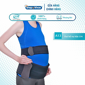 Đai hỗ trợ bầu UM (A13) là đai lưng có thiết kế đặc biệt hỗ trợ phần lưng thấp ở khung chậu và đau phần Sacro-Iliac ở phụ nữ mang thai. Đai hỗ trợ bầu UM có tác dụng nâng đỡ phần bụng và em bé trong bụng, giảm bớt gánh nặng trên thắt lưng cho người mẹ khi mang thai. CHỈ ĐỊNH