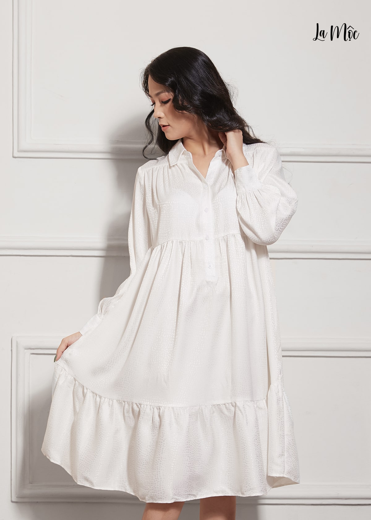 ღ THÔNG TIN SẢN PHẨM: Tên sản phẩm: Đầm trắng cổ sơ mi tay dài Chất liệu: Chất tafta Chi tiết sản phẩm: không lót, không túi Thông số size: S, M,