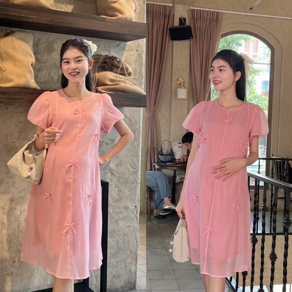 ✨Đầm bầu tơ phom suông đính nơ nhẹ nhàng, dễ thương, sang chảnh Nữ Women