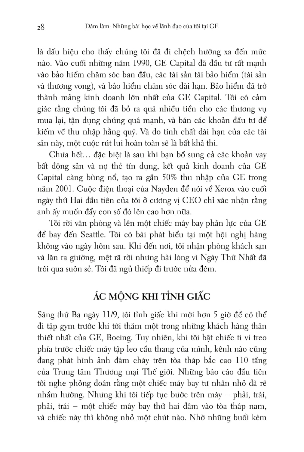 "Dám làm: Những bài học về lãnh đạo của tôi tại GE" không chỉ là một cuốn hồi ký về sự nghiệp của một CEO, mà còn là một bài học về lãnh đạo trong những thời điểm khó khăn. Immelt không né tránh việc thừa nhận các sai lầm của mình, và ông nhấn mạnh tầm quan trọng của việc học hỏi từ những thất bại để tiến lên. Cuốn sách cũng là một minh chứng cho sự phức tạp và áp lực của việc điều hành một tập đoàn toàn cầu, và làm thế nào để một nhà lãnh đạo có thể giữ vững tinh thần, dù cho hoàn cảnh có khó khăn đến đâu. Cuối cùng, đây là một lời nhắc nhở rằng, trong kinh doanh, không có thành công nào đến dễ dàng, và việc lãnh đạo đòi hỏi sự can đảm, kiên nhẫn, và khả năng chịu đựng áp lực khủng khiếp.