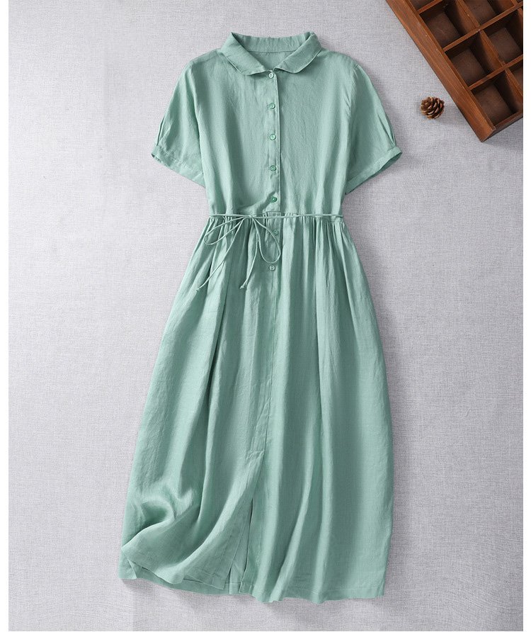 ✨Đầm Linen Nữ Form Suông Cổ Sen, có dây buộc eo, thoáng mát Da216