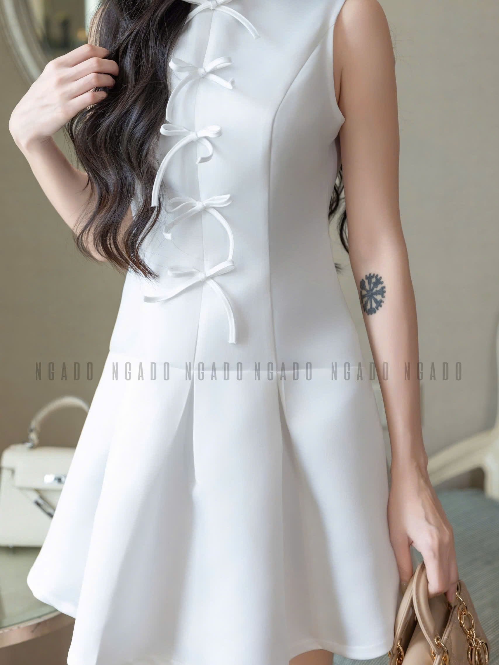 ✨Đầm trắng sát nách đính nơ NGADO , đầm kiểu Nữ , đầm dự tiệc