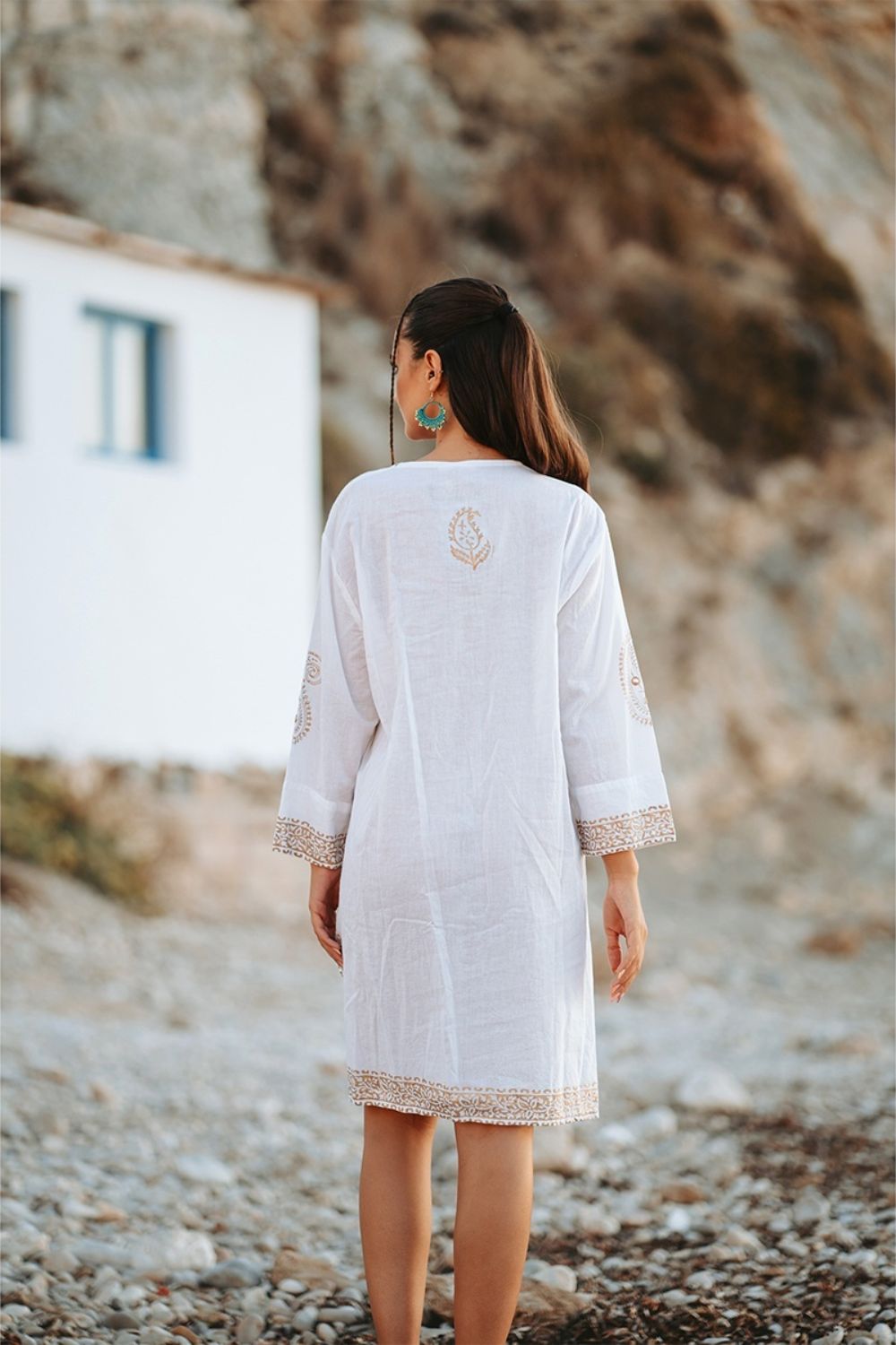 ✨Đầm Trắng Xẻ Tà Vẽ Ánh Kim Cotton Isla Bonita