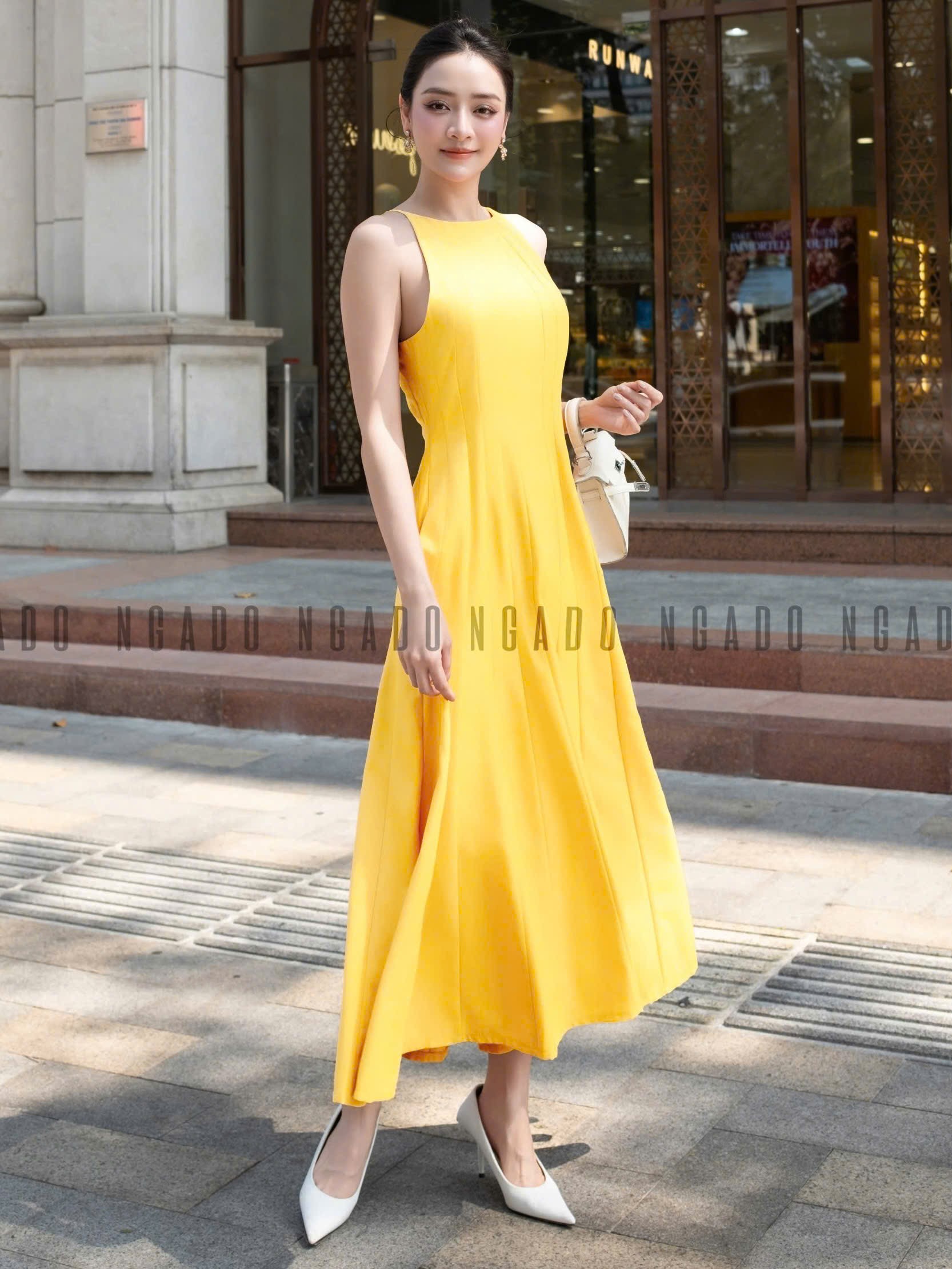 ✨Đầm vàng chanh cổ yếm NGADO , đầm cổ yếm , đầm kiểu Nữ
