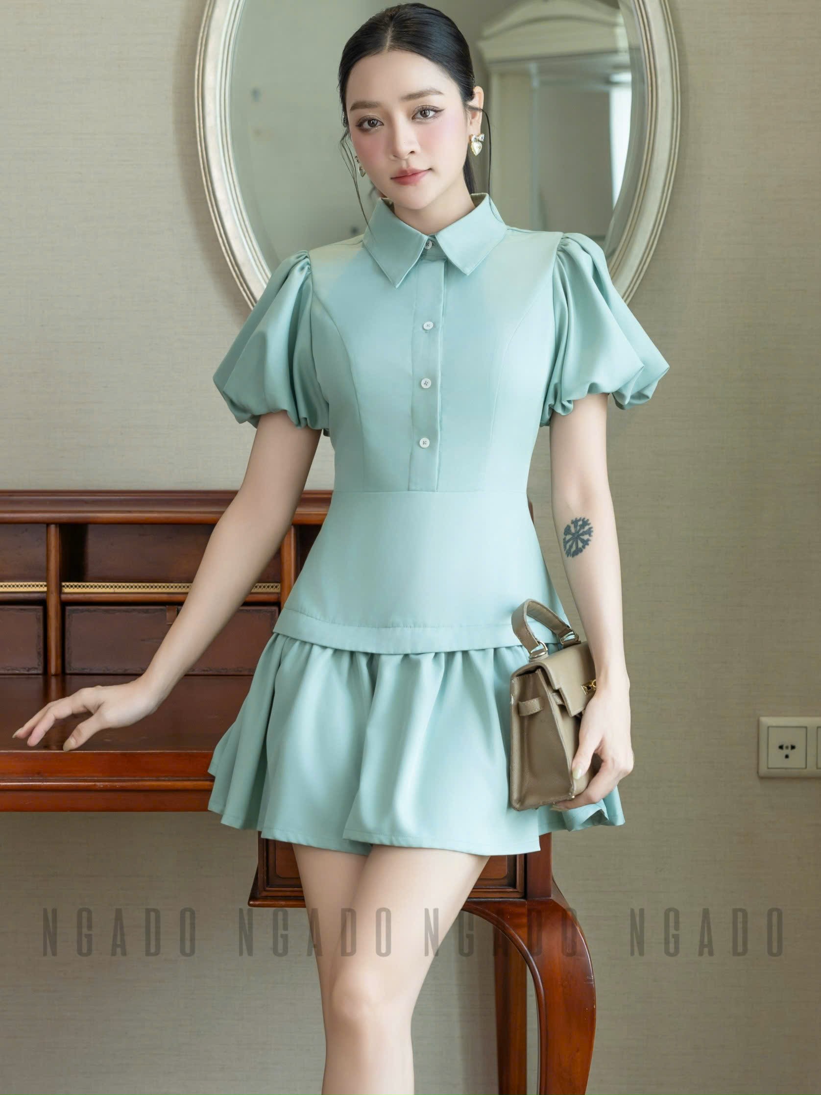 ✨Đầm xanh mint tùng tầng NGADO , đầm kiểu Nữ , đầm công sở , dự tiệc