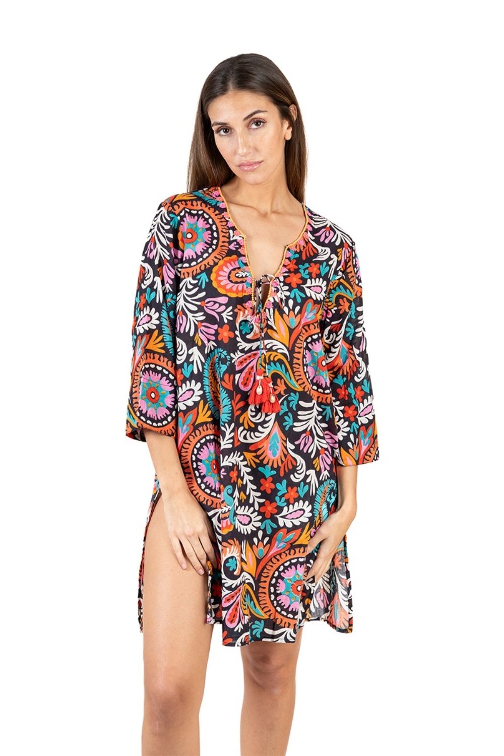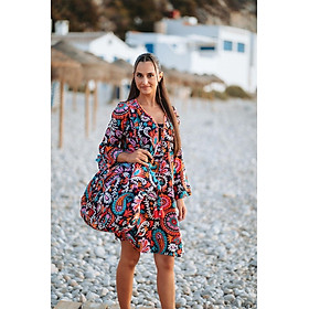 Đầm Boho Dài Tay Isla Bonita, chất lụa cao cấp, mềm mại, thun co giãn ở eo. Phom suông xòe rộng. Dài đầm 90cm (45x90) Phù hợp đi biển, dạo phố, công sở, hoặc dự