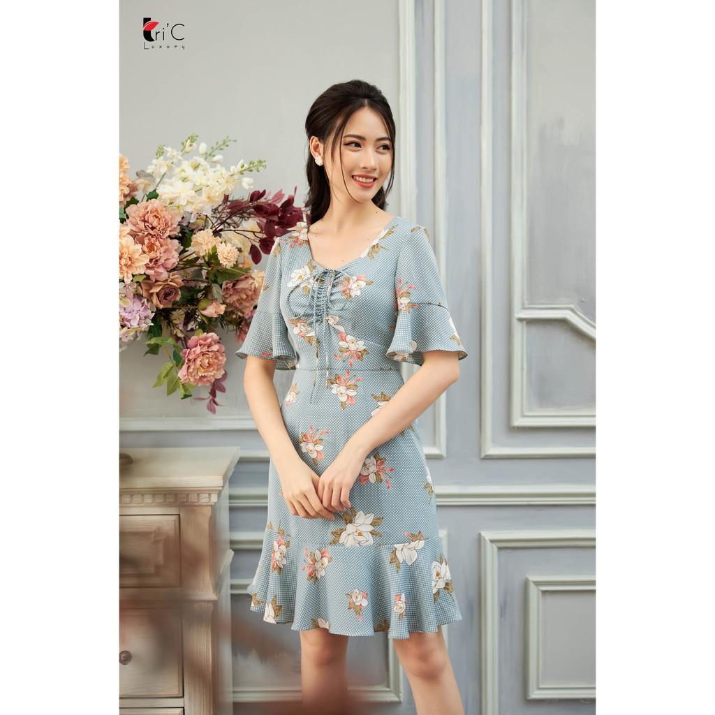 ✨Đầm xòe đuôi cá Tri'C Luxury rút dây ngực Xanh pastel A20420