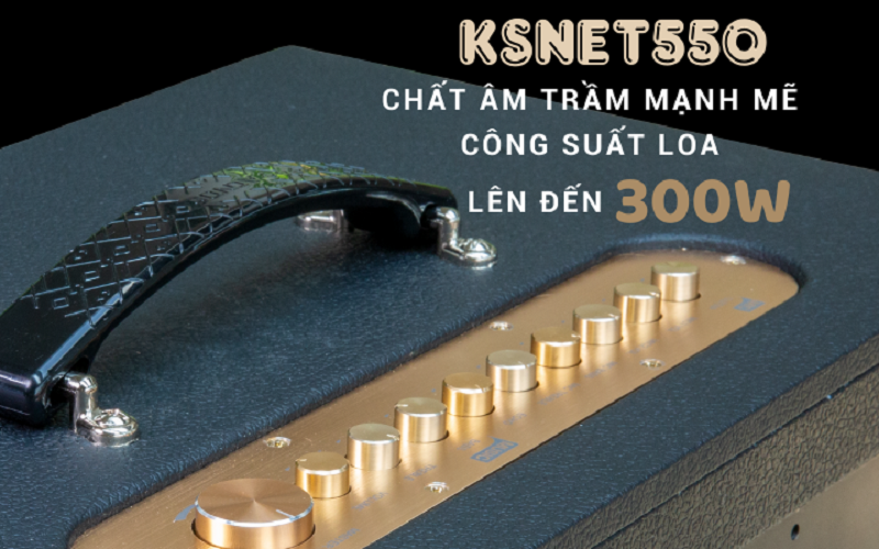 - Bảo hành : Sản phẩm 12 tháng. Bình điện và phụ kiện đi kèm bảo hành theo chính sách in trên phiếu bảo hành BẢO HÀNH TOÀN QUỐC QUÝ KHÁCH LƯU Ý : Quay video quá trình khui kiểm sản phẩm Dàn Âm Thanh Di Động ACNOS KSNET550 Dàn âm thanh di động ACNOS KSNET550 thiết kế thùng gỗ có quai xách. Công suất thực RMS 300W (max) - Công suất âm thanh PMPO 1200W (max) cho âm thanh sống động. Hệ thống 10 loa trong 1 bao gồm 4 loa FULL 6.5 inch và 6 loa SWEETER. Micro UHF không dây nhẹ hơi lọc âm tốt, nâng giọng hát karaoke chuyên nghiệp. TÍCH HỢP ĐẦU KARAOKE ANDROID - CÔNG NGHỆ CA HÁT Dàn âm thanh di động ACNOS KSNET550 tích hợp đầu Android Karaoke 4K, phát karaoke 4K lên Tivi qua ngõ HDMI. Tìm kiếm bài hát từ kho nhạc Youtube trộn chung kho nhạc chọn lọc với hàng trăm ngàn bài hát chất lượng cao. Chọn bài bằng giọng nói, tìm bài hát chỉ mất vài giây với tên bài hát, tên ca sĩ, tên tác giả, thể loại nhạc hoặc 1 đoạn lời bất kỳ trong bài. Điều khiển và chọn bài hát qua smartphone và tablet, kết nối không dây với 8 thiết bị di động. Chọn bài thông minh: