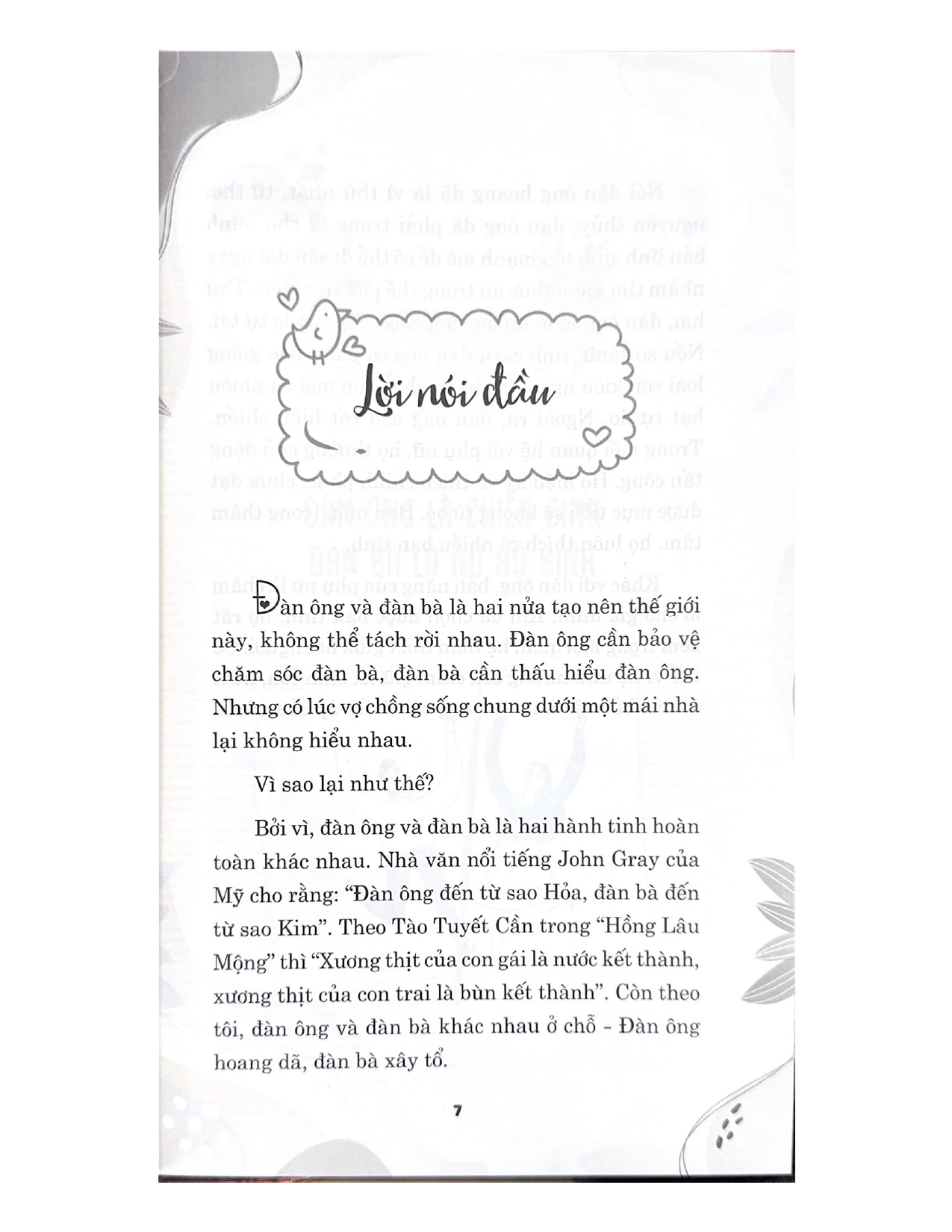 Đàn ông, bất kể bên ngoài làm gì, về nhà cũng cần được tôn trọng, tôn nghiêm là giá trị quan trọng nhất của đàn ông. Đàn bà với bản năng xây tổ, sống tình cảm, Thượng Đế tạo ra đàn bà chính là để được đàn ông yêu.