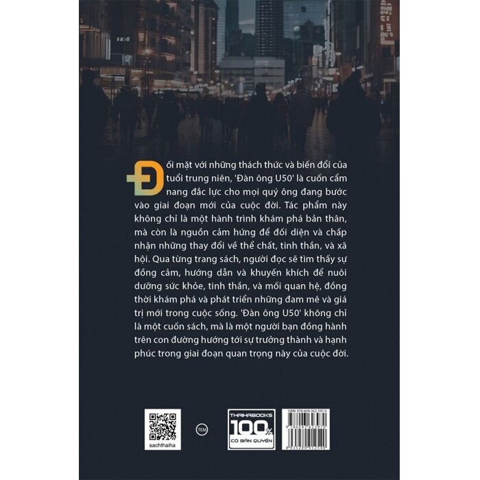 Đàn Ông U50 Đàn ông U50 là cuốn cẩm nang đắc lực cho mọi quý ông đang bước vào giai đoạn mới của cuộc đời - tuổi trung niên với đầy những thách thức và biến đổi. Tác phẩm này không chỉ là hành trình giúp người đọc khám phá bản thân, mà còn là nguồn cảm hứng để người đọc đối diện và chấp nhận những thay dổi về thể chất, tinh thần và xã hội. Qua từng trang sách, người đọc sẽ tìm thấy sự đồng cảm, hướng dẫn và khuyến khích để nuôi dưỡng sức khoẻ, tinh thần và mối quan hệ, đồng thời khám phá và phát triển những đam mê và giá trị mới trong cuộc sống. Không chỉ là một cuốn sách, Đàn ông U50 còn là một người bạn đồng hành của các quý ông trên con đường hướng tới sự trưởng thành và hạnh phúc trong giai đoạn quan trọng này của cuộc đời.