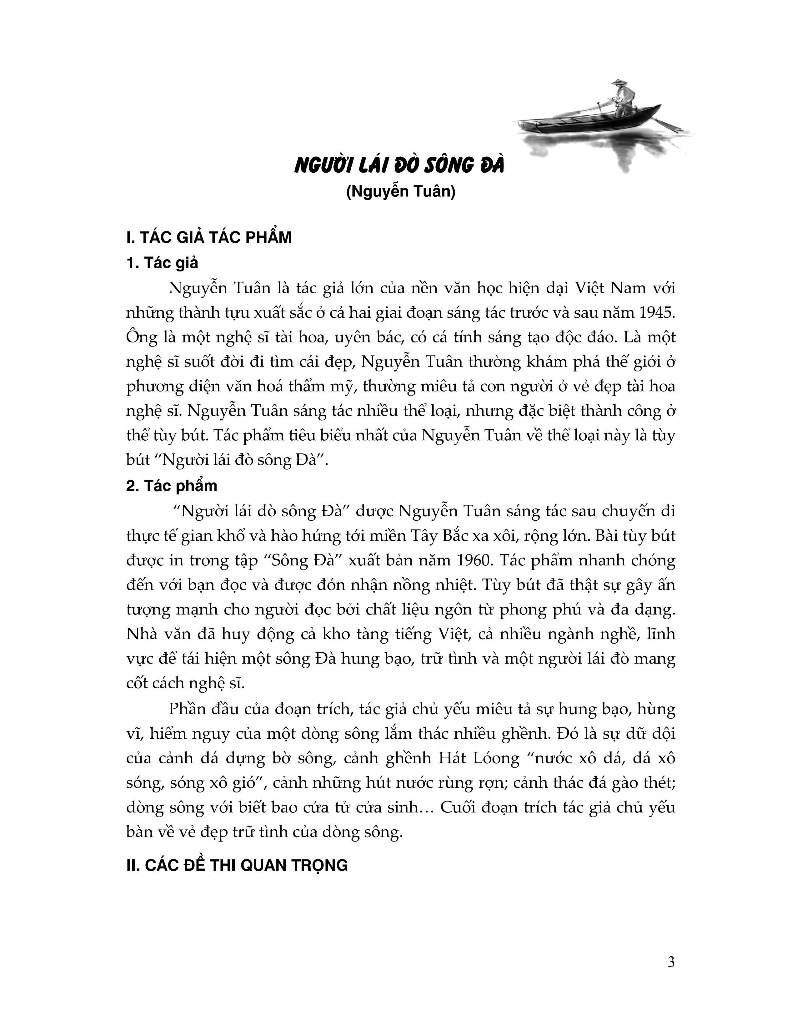 Hiện nay đề thi mới của bộ GD & ĐT thường ra theo dạng đề thi cảm nhận một doạn trích văn xuôi. Dây là dạng đề đồi hỏi người dạy và người học phải có nhiều thời gian để đầu tư nghiên cứu, phải tốn nhiều công sức, chất xám thì mới có kết quả tốt. Dạng đề này cũng đang làm khó giáo viên và học sinh, đa số vẫn đang loay hoay tìm phương án dạy học phù hợp. Trên thị trường sách tham khảo, chưa có cuốn sách nào viết theo hướng đề thi này.