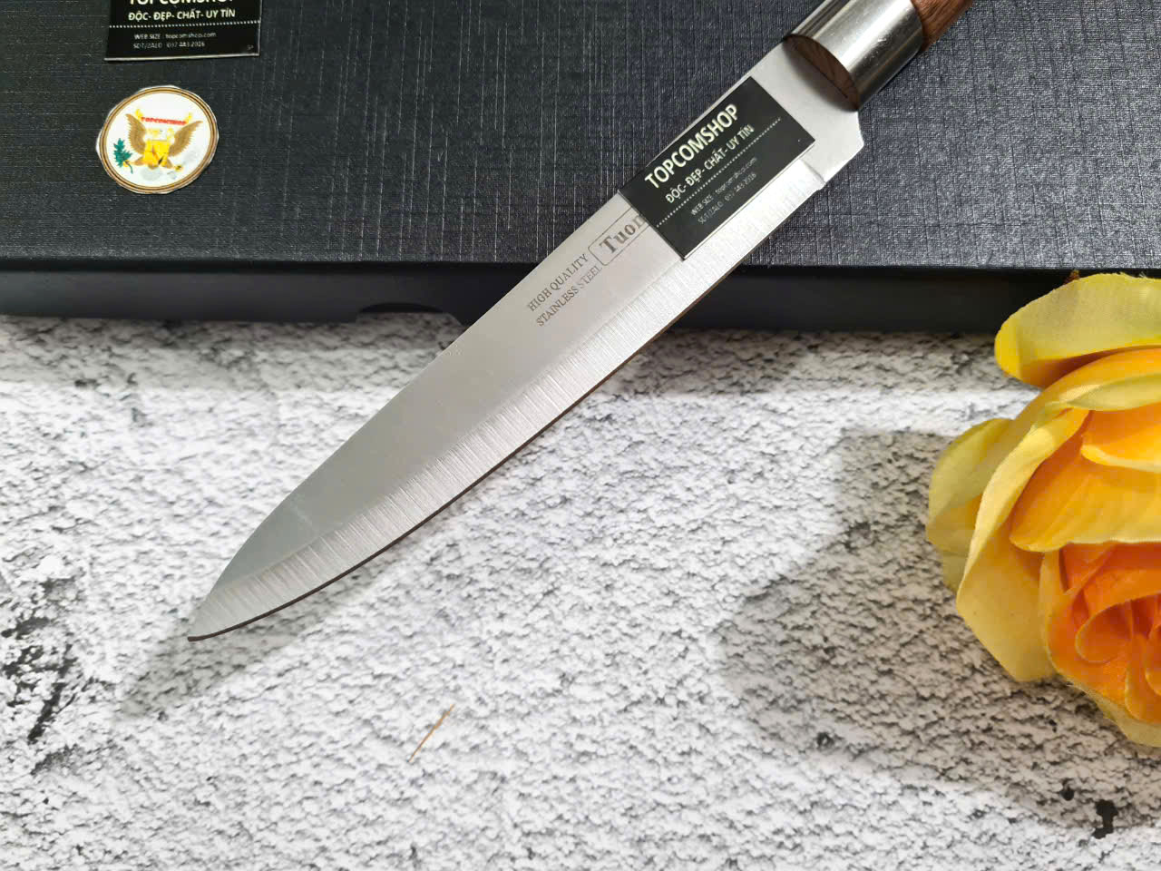 Dao gọt nhỏ vừa vặn với tay cầm. Sử dụng đa năng, phù hợp cho việc cắt và gọt hoa quả, trái cây, lọc cá và có thể sử dụng nó trực tiếp trên bàn ăn. Toàn