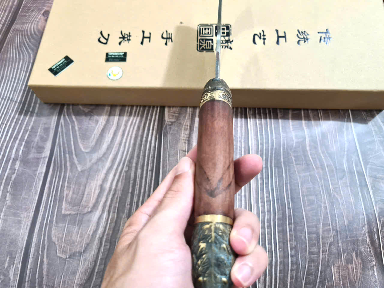 Dao Phúc Sen Chặt - Thái Bản 10 Cán Cẩm Khâu Đồng - Kích thước: lưỡi: 22cm, cán: 13cm, rộng: 10cm, dầy: 3ly , trọng lượng: 600g - Chức năng: sử dụng chuyên chặt gà
