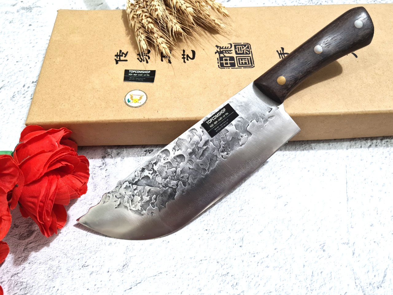 Tên sản phẩm: Dao Phúc Sen, Dao Thái Kiểu 03 Cán Gỗ Cẩm - Chức năng: chuyên thái thịt, rau củ - Chất liệu: 100% thép nhíp ô tô được lựa chọn và kiểm duyệt