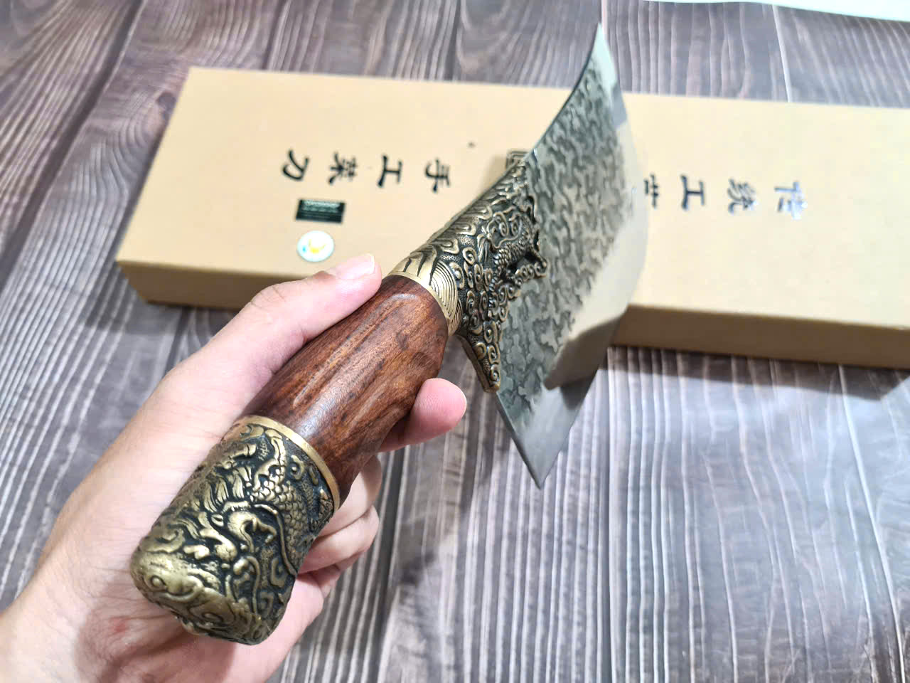 DAO PHÚC SEN - Dao Thái 22 cán mun khâu đồng đỏ - Chức năng: chuyên thái thịt và rau củ - Kích thước: Lưỡi: 22cm, cán: 12cm, rộng: 7,5cm, dầy: 1ly, trọng lượng: 280g