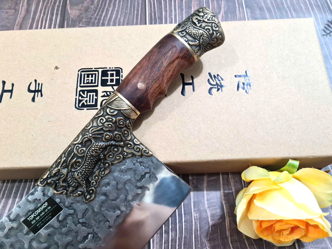 Tên sản phẩm: Dao Phúc Sen, Dao Thái Kiểu 03 Cán Gỗ Cẩm - Chức năng: chuyên thái thịt, rau củ - Chất liệu: 100% thép nhíp ô tô được lựa chọn và kiểm duyệt