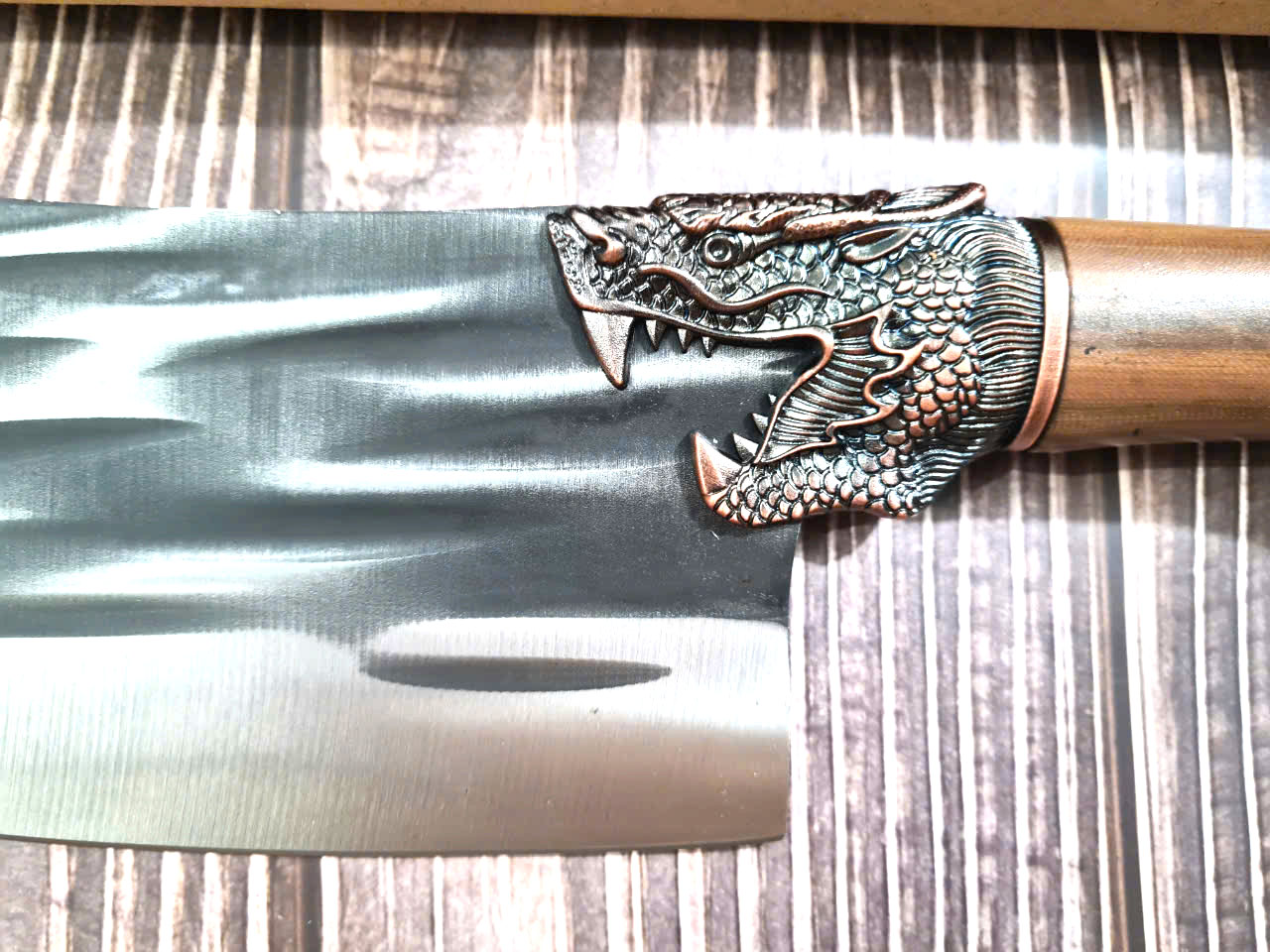 Tên sản phẩm: Dao Phúc Sen, Dao Tông Chặt Gà Cán Gỗ Thường - Chất liệu: 100% thép nhíp ô tô được lựa chọn và kiểm duyệt kỹ càng. - Chất liệu cán: gỗ sao