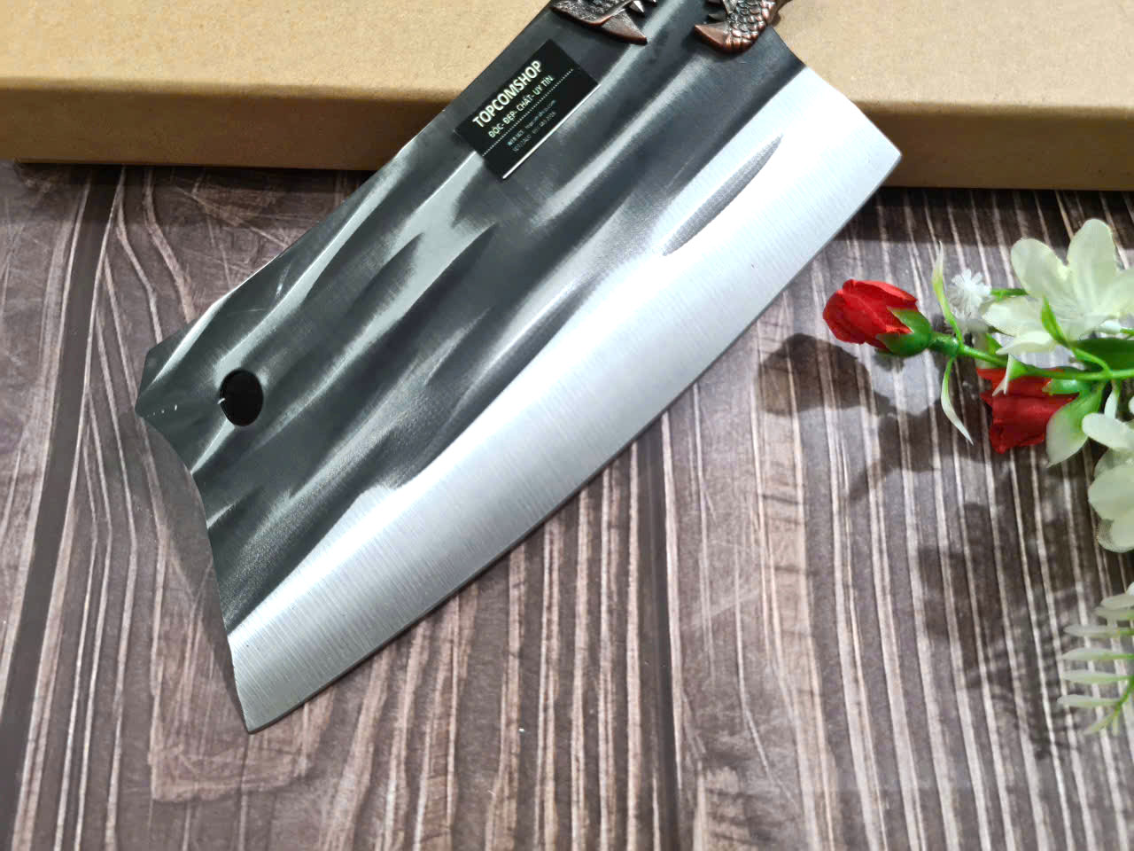 Dao Phúc Sen - Dao chặt xương 5ly - Chất liệu: 100% thép nhíp ô tô được lựa chọn và kiểm duyệt kỹ càng. - Chất liệu cán: gỗ cẩm chỉ núi - Kích thước: