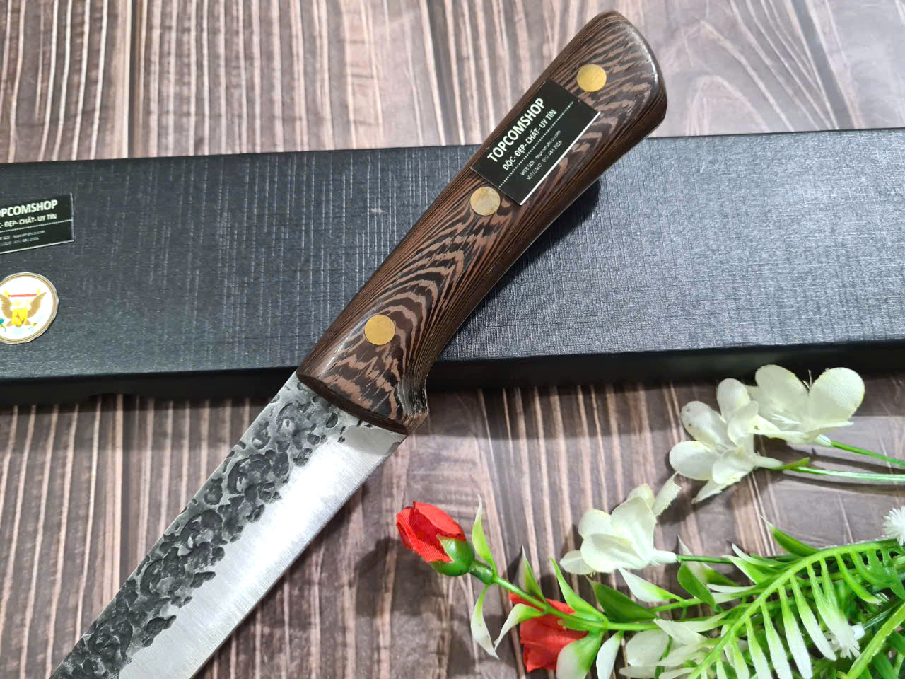 • Chất liệu: Thép Nhật 420J2, độ cứng 53HRC – siêu bền, chống gỉ • Lưỡi dao: Dày 2.5mm, sắc bén, hoàn thiện bằng đá mài nước • Tay cầm: Gỗ Pakka sang trọng, chống