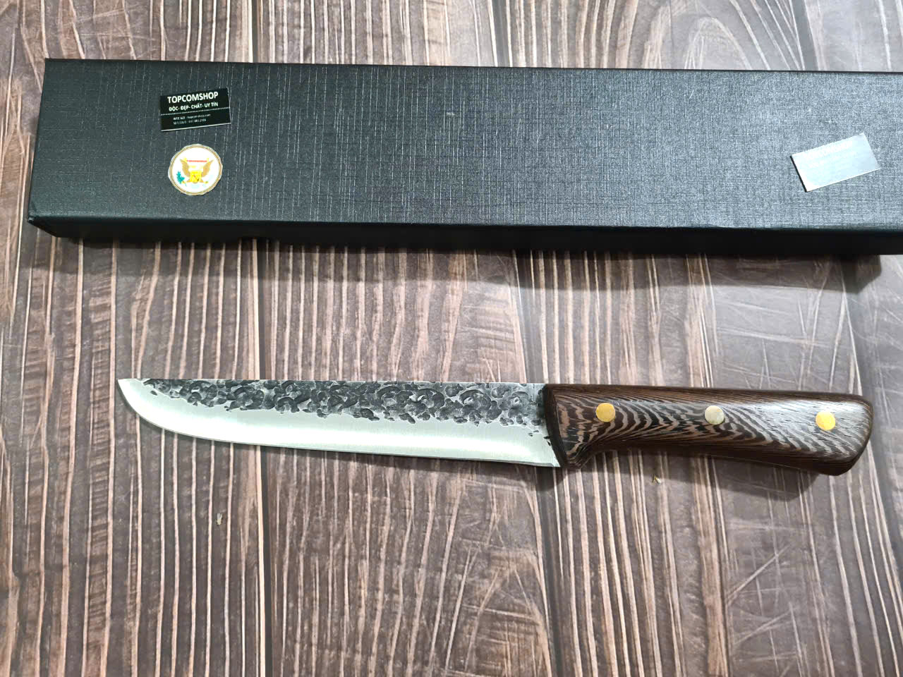 D SỐ 2 : TỔNG DÀI : 30cm, LƯỠI: 17.5cm,RỘNG : 2.9cm, dày: 2.5mm, CHẤT liệu lưỡi: 5Cr15MOV (thép 5 crom 15 molypden vanadi).Chất liệu CÁN: gỗ Cánh gà,.NẶNG : 2 lạng