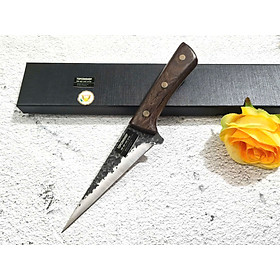 • Chất liệu: Thép Nhật 420J2, độ cứng 53HRC – siêu bền, chống gỉ • Lưỡi dao: Dày 2.5mm, sắc bén, hoàn thiện bằng đá mài nước • Tay cầm: Gỗ Pakka sang trọng, chống