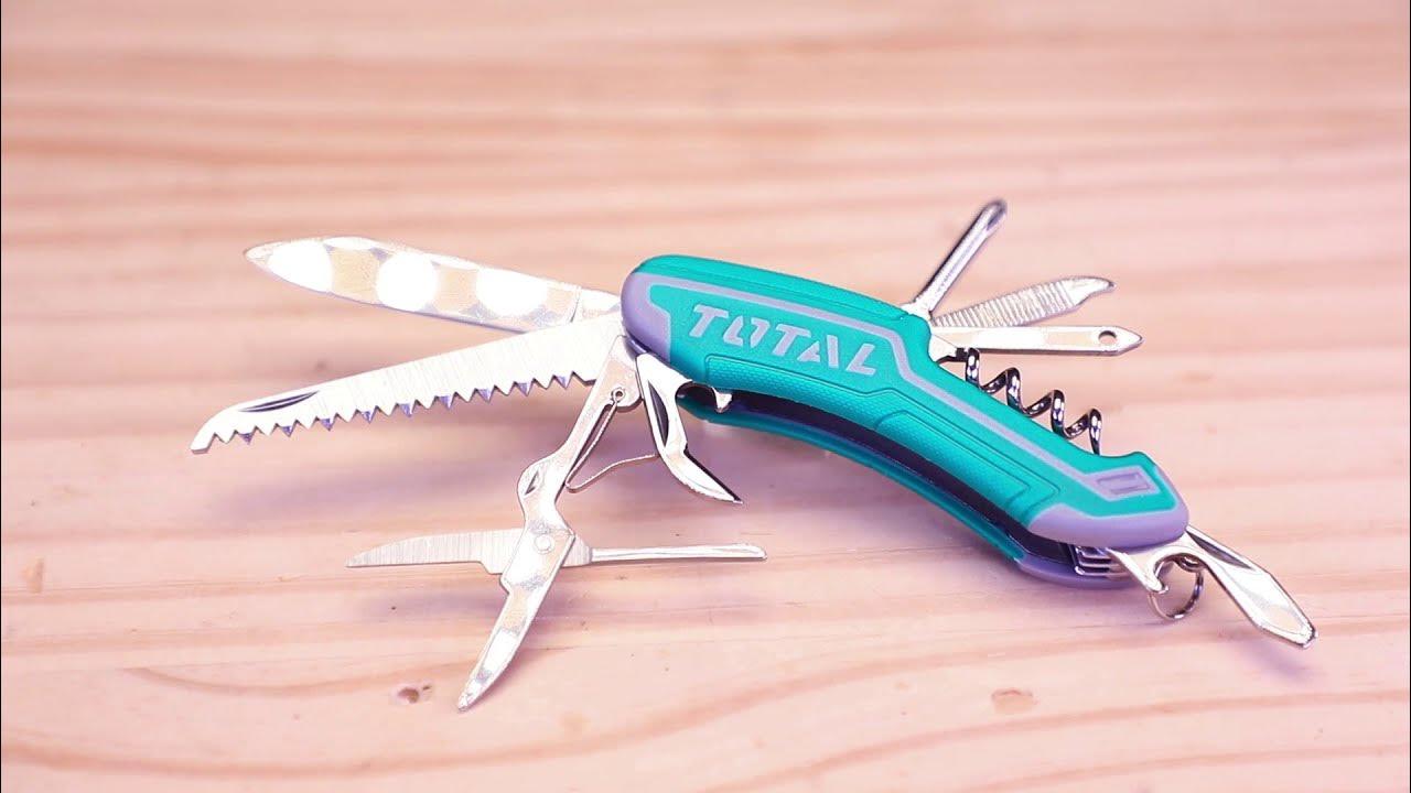 -Có 12 công năng gồm: Dao lớn. Dụng cụ mở hộp ,Tua vít bake.