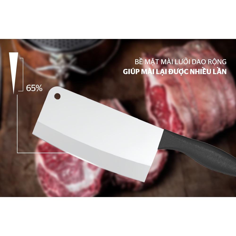 Đặc biệt, tay cầm của dao chặt được thiết kế rất vừa vặn với cỡ tay trung bình của người dùng. Khuôn cán giảm trơn trượt, dễ cầm nắm, tăng độ an toàn trong quá trình sử dụng