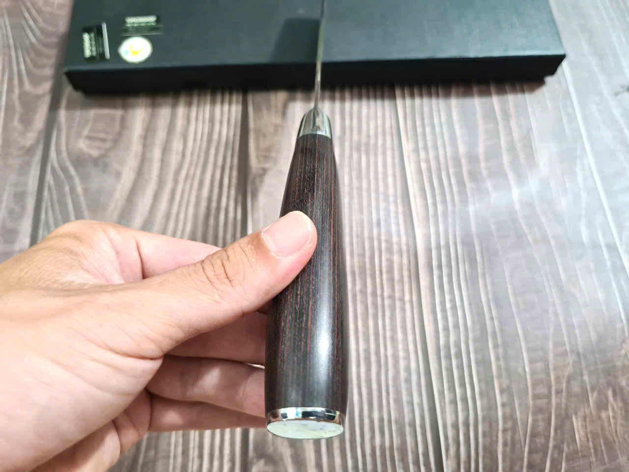 - Chức năng: chuyên lọc - thái cá thịt, rau củ. - Kích thước: Lưỡi: 21cm, cán: 12cm, rộng: 5cm, dầy: 2ly, trọng lượng: 200g - Cán : Gỗ mun , Khâu và chốt đồng