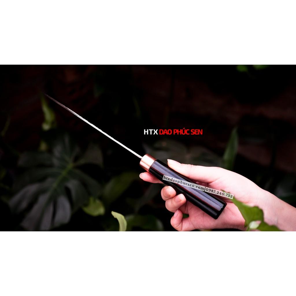 Dao Phúc Sen bản Takohiki - Kích thước: lưỡi: 24cm, cán: 12cm, rộng: 3.5cm, dầy: 2.5 ly, trọng lượng: 200g - Chức năng: sử dụng chuyên thái thịt ,cá, rau củ và các thực phẩm