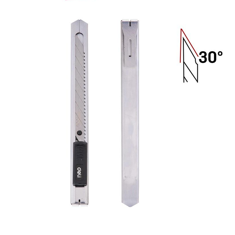 Dao Rọc Giấy Nhỏ 0.4 x 9 x 80 mm - Deli 2053 chế tạo lưỡi dao bằng hợp kim thép sắc bén, vỏ bọc bằng kim loại mạ bạc cho độ bền hoàn hảo,