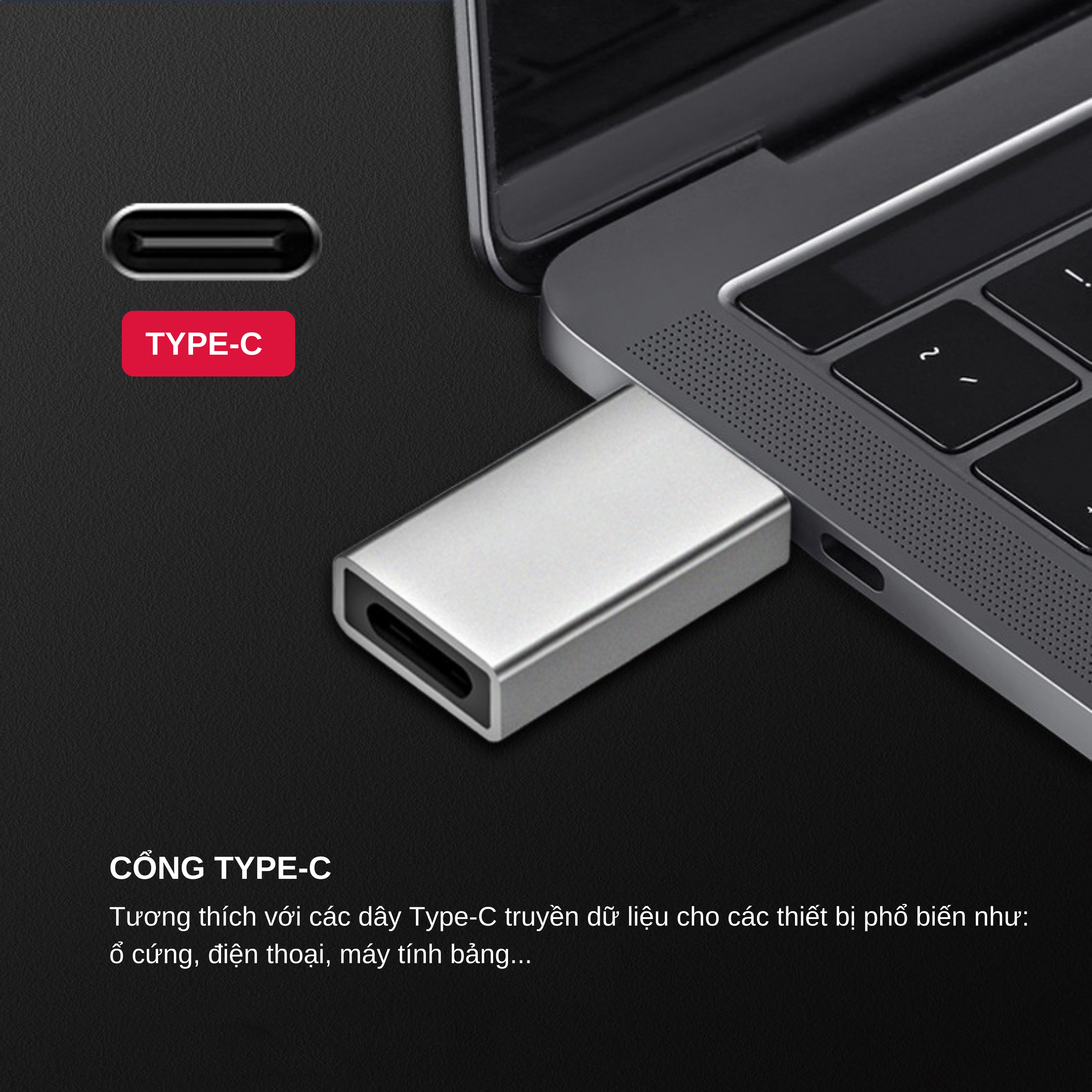 - Chức năng : chuyển đổi cổng giao tiếp USB Type C thành cổng USB Type A - Dùng chuyển đổi cổng sạc pin và chia sẻ/ đồng bộ dữ liêu cho các thiết bị