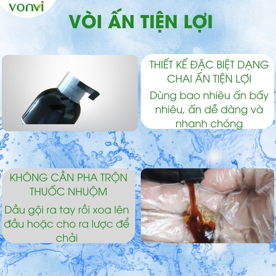 Dầu gội đen tóc VONVI tóc đen tự nhiên sau 10 phút tự phủ bạc dạng chai ấn 200 ml
