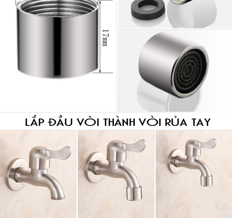 Mua tại TiktokĐẦU NỐI CHUYỂN ĐỔI THÀNH VÒI RỬA TAY – INOX 304 DÙNG ĐỂ: Lắp vào đầu vòi nước thông dụng thành vòi rửa tay CHẤT LIỆU: INOX 304 ĐÓNG GÓI: Đầu nối + Gioăng cao su chống lão hóa Đầu ren: Ren chuẩn ống nước VN Ảnh chụp thực tế