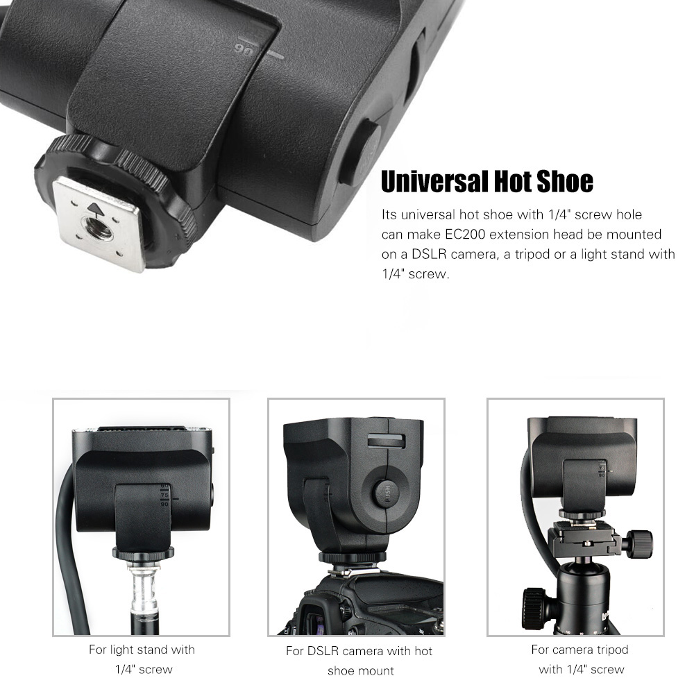 Features: EC200 extension head is a new accessory that turns Godox AD200/AD200 Pro battery flash into a pack-and-head system. Cable length is up to 1.85m, which makes shooting more convenient. Godox AD200/AD200 Pro works with