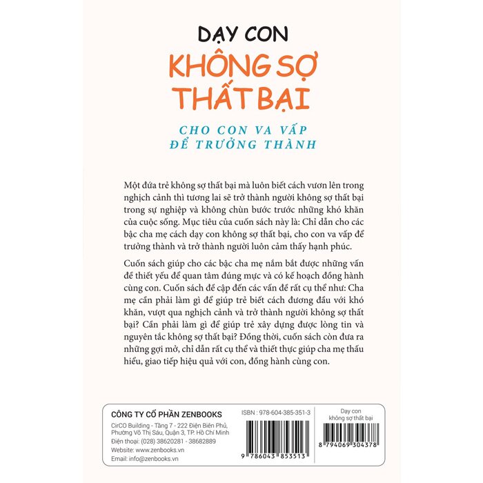 Mua tại TiktokDạy Con Không Sợ Thất Bại "Dạy Con Không Sợ Thất Bại" cuốn sách giúp cho các bậc cha mẹ nắm bắt được những vấn đè thiết yếu để quan tâm đúng mực và có kế hoạch đồng hành cùng con. Cuốn sách đề cập đến các vấn đề rất cụ thể như: cha mẹ cần phải làm gì để giúp trẻ biết cách đương đầu với khó khăn, vượt qua nghịch cảnh và trở thành người không sợ thất bại? Cần phải làm gì để giúp trẻ xây dựng được lòng tin và nguyên tắc không sợ thất bại? Đồng thời, cuốn sách còn đưa ra những gợi mở, chỉ dẫn rất cụ thể và thiết thực giúp cha mẹ thấu hiểu, giao tiếp hiệu quả, giao tiếp hiệu quả với con, đồng hành cùng con.