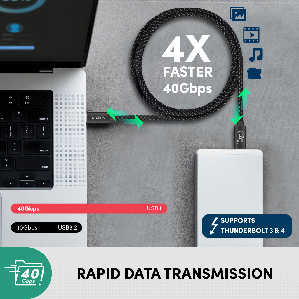 Dây sạc C to C PROLiNK GCC_240G3 dài 2m, sạc nhanh 240W chuẩn PD 3.1, truyền dữ liệu 40Gbps, xuất hình ảnh 8K Ultra HD
