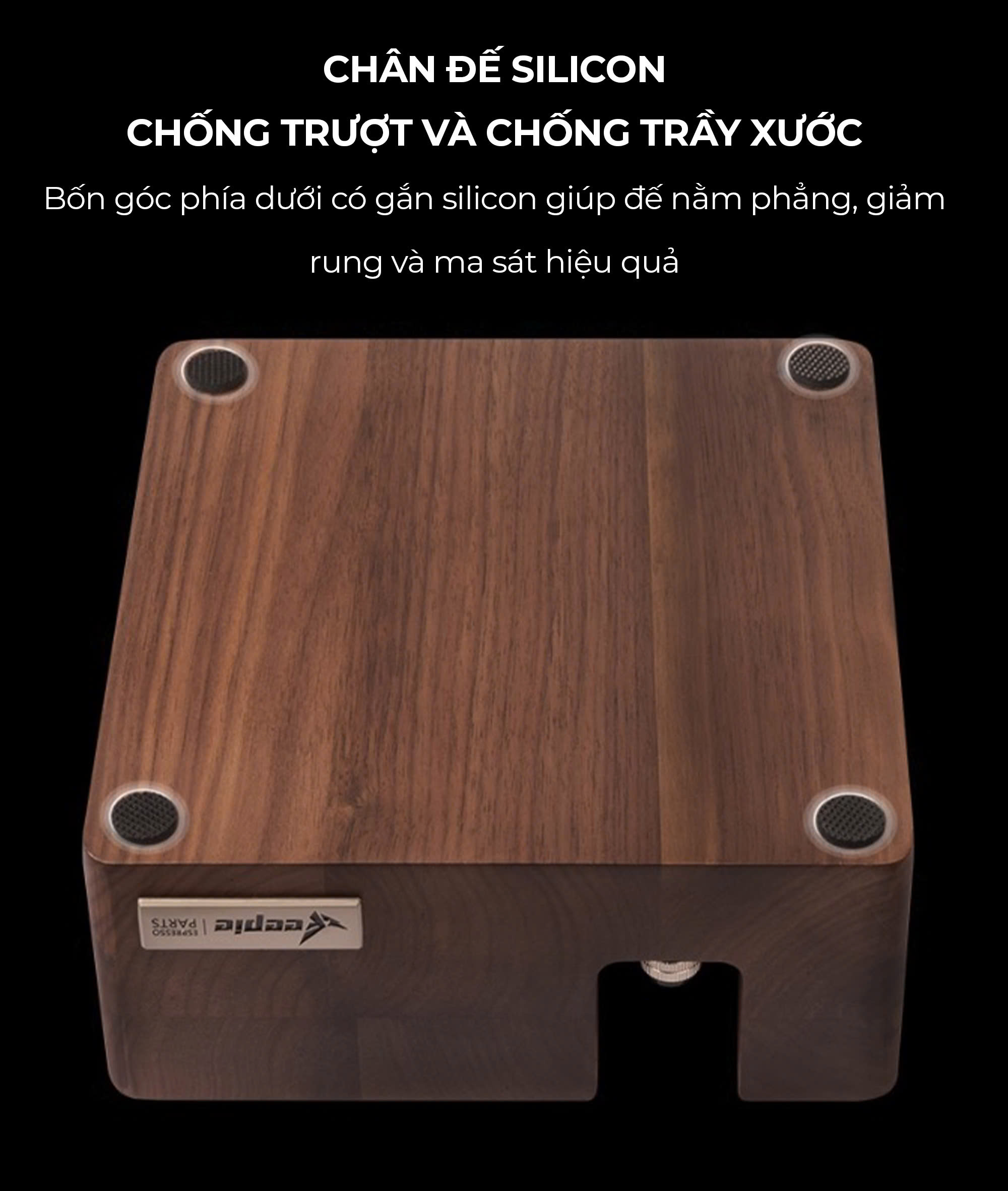GIÁ ĐỠ TAMPER BẰNG GỖ TỰ NHIÊN PHA CÀ PHÊ MÁY ESPRESSO CAFE DE KONA Khối gỗ được làm bằng 2 loại gỗ: gỗ óc chó đen và gỗ giẻ gai châu âu.